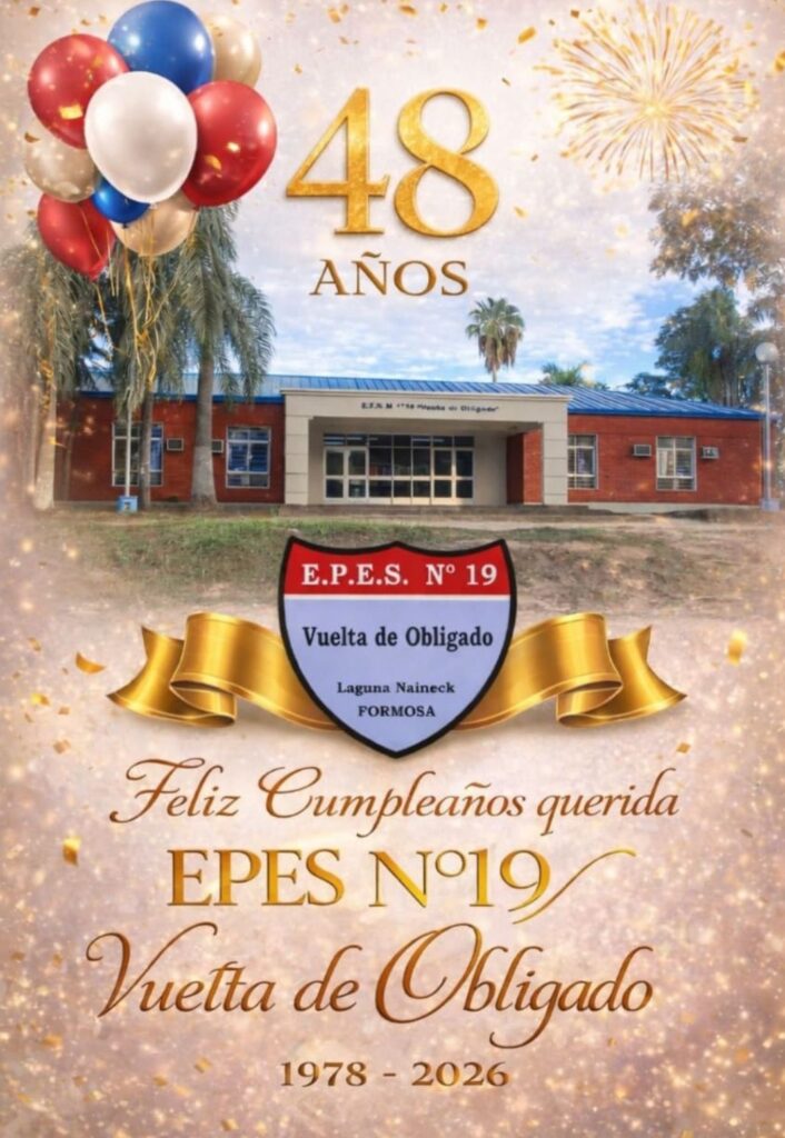 La comunidad educativa de Laguna Naineck conmemora los 48 años de vida institucional de la Escuela de Educación Secundaria (E.P.E.S.) N° 19 “Vuelta de Obligado”, un establecimiento que desde su creación ha marcado el rumbo formativo y social de la región. Fundada por decreto provincial el 15 de diciembre de 1977, la escuela nació como respuesta a la necesidad de ofrecer educación media en la zona y, desde entonces, ha consolidado un legado de compromiso con las nuevas generaciones.